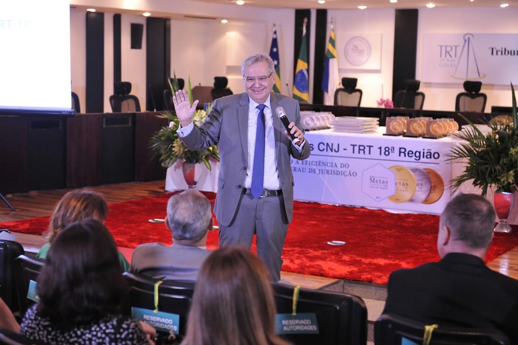 Em nome do Tribunal, o desembargador corregedor agradeceu o empenho de todos os magistrados e servidores e lembrou que o TRT18, em 2017, teve o melhor desempenho global no cumprimento das metas desde que elas foram instituídas pelo CNJ. Em seguida, ele fez uma apresentação em slides demonstrando os resultados obtidos no ano passado, meta por meta, e fez comentários sobre as perspectivas e desafios que o Regional terá este ano com as metas propostas pelo CNJ ao Judiciário Trabalhista para 2018.