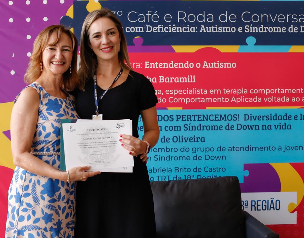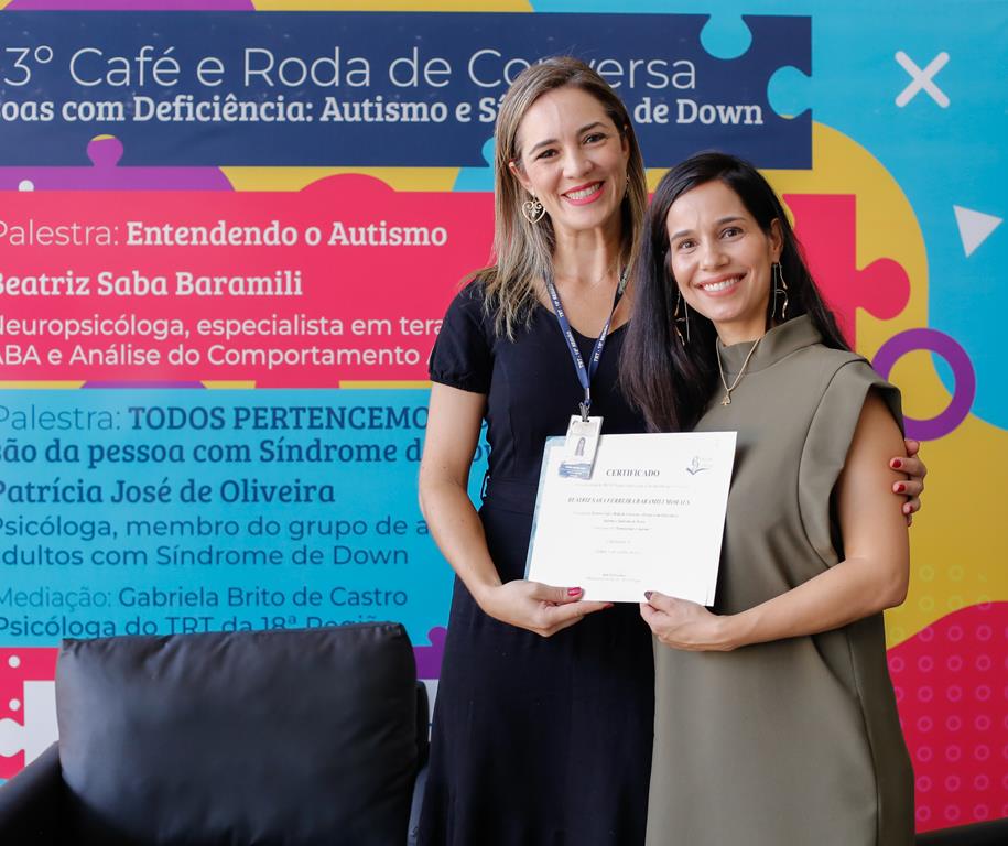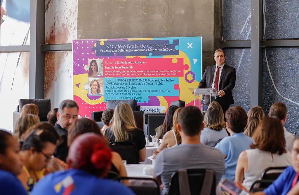 Nunca se falou tanto sobre inclusão, e naturalmente o assunto também se estende para a discussão sobre neurodiversidade. É o que propôs o “Terceiro Café e Roda de Conversa – Pessoas com deficiência: autismo e síndrome de Down”, realizado no dia 16 de setembro no TRT. A desembargadora Iara Rios, diretora da Ejud, abriu o evento e falou sobre a importância do tema e da atuação conjunta e solidariedade de todos para assegurar a inclusão e a neurodiversidade nas instituições e no mercado de trabalho. O juiz Rodrigo Dias, coordenador pedagógico da Ejud, apresentou as palestrantes e saudou os presentes.