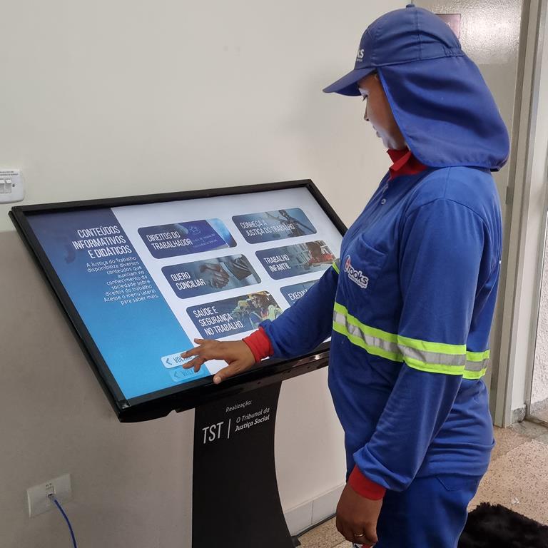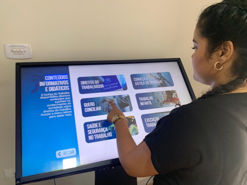 Gari Marina Limontte testou o totem e disse que o equipamento permite ter um conhecimento mais aprofundado de direitos trabalhistas como férias e 13º salário