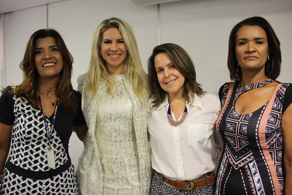 As juízas Mânia Nascimento e Dânia Soares e as servidoras Adriana Almeida e Tânia Almeida e toda a equipe da Vara do Trabalho de Uruaçu e do Posto Avançado de Porangatu comemoram o resultado de um ano de trabalho dedicado à finalização dos 105 processos em fase de execução da antiga empresa