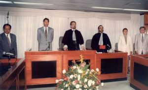 Octávio Maldonado (terceiro da esquerda pra direita) na sessão solene de posse na presidência do TRT-18. “Sou um juiz, irremediavelmente juiz, que outro objetivo não almeja em sua vida profissional senão a conduta justa e honesta” declarou em seu discurso de posse.
