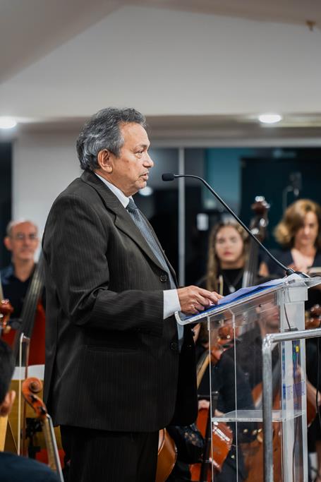 Orquestra Sinfônica Juvenil Pedro Ludovico Teixeira e Coral Labor em Canto se apresentando durante a cerimônia