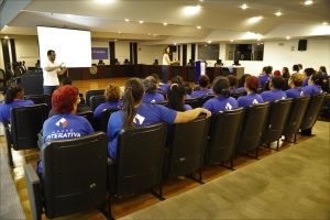 Ademais, Lara Nercessian fez uma apresentação detalhada acerca dos tipos de resíduos e formas de descartá-los, de forma a esclarecer todas as futuras possíveis dúvidas dos terceirizados.