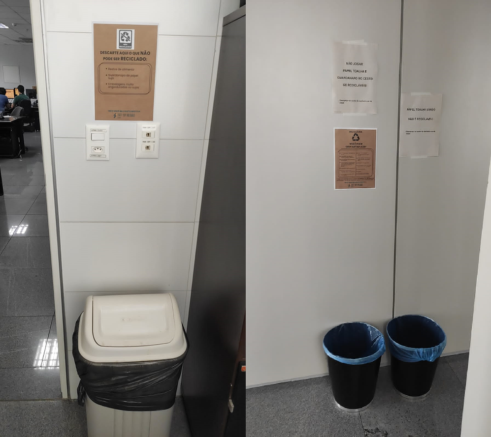 Entre as mudanças citadas, o destaque ficou para a aquisição de dois tipos de coletores diferentes para resíduos orgânicos e recicláveis. Por enquanto, o tribunal adotará o uso de sacolas cinzas em cestos voltados para resíduos orgânicos e sacolas azuis para resíduos recicláveis. Acima dos coletores serão colocadas placas com orientações sobre o descarte correto dos resíduos.