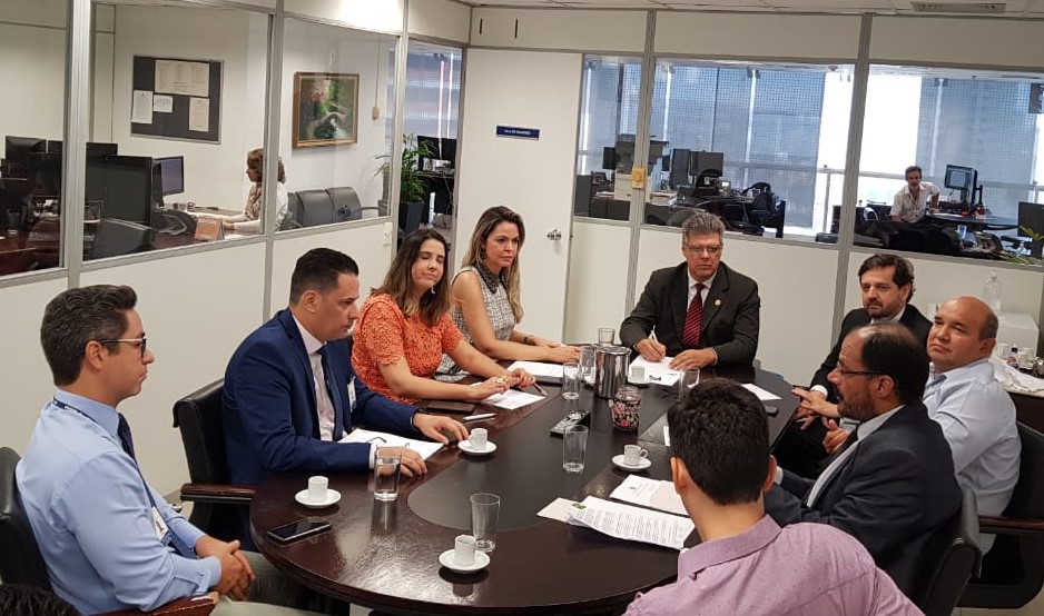 Reunião sobre o projeto Garimpo, realizada no último dia 6, contou com a presença do desembargador-corregedor do TRT-18, Daniel Viana. Ele é cliente do projeto, que tem ainda como supervisor o juiz auxiliar da Vice-Presidência, Luciano Crispim, e como gerente o secretário da Corregedoria Regional, Marcelo Marques