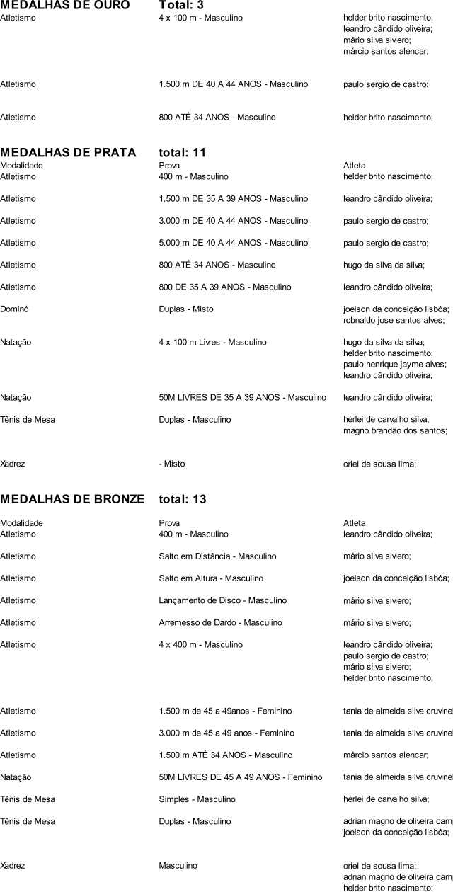 A modalidade em que nossos servidores mais se destacaram foi no atletismo com 18 medalhistas, mas a delegação goiana representou o TRT Goiás no tênis de mesa, xadrez, dominó, futvôlei, tênis de campo, vólei de areia, natação e ciclismo. Além da participação de atletas da capital, três servidores lotados nas unidades do interior integraram a equipe, dois da VT de Jataí e um servidor da 3ª VT de Anápolis.