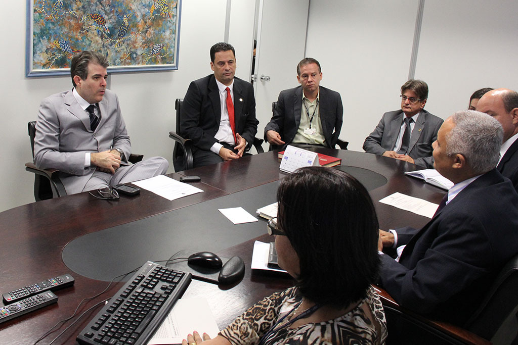 Desembargador Aldon Taglialegna, à esquerda, em reunião na Secretaria Geral Judiciária do TRT-GO