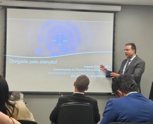Em seguida, Augusto Dias, diretor da Coordenadoria de Precedentes e Jurisprudência do TRT-GO, discutiu perspectivas relacionadas à gestão de precedentes, destacando as inovações e impactos desse modelo para a uniformização das decisões judiciais.