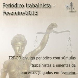 O Tribunal Regional do Trabalho da 18ª Região (Goiás) divulgou periódico trabalhista de fevereiro com jurisprudência do TRT18, súmulas trabalhistas do STF e STJ, além de súmulas, orientação jurisprudencial e precedentes normativos do TST.