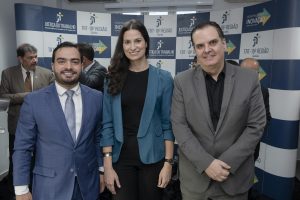 Presidente da OAB Seção Caldas Novas, Kamila Ferreira (ao centro), e o procurador-geral do município, Rodrigo Sousa (à direita)