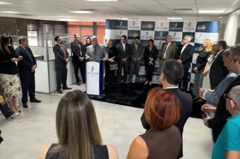 Várias autoridades acompanharam o descerramento da placa de inauguração do Cejusc Digital