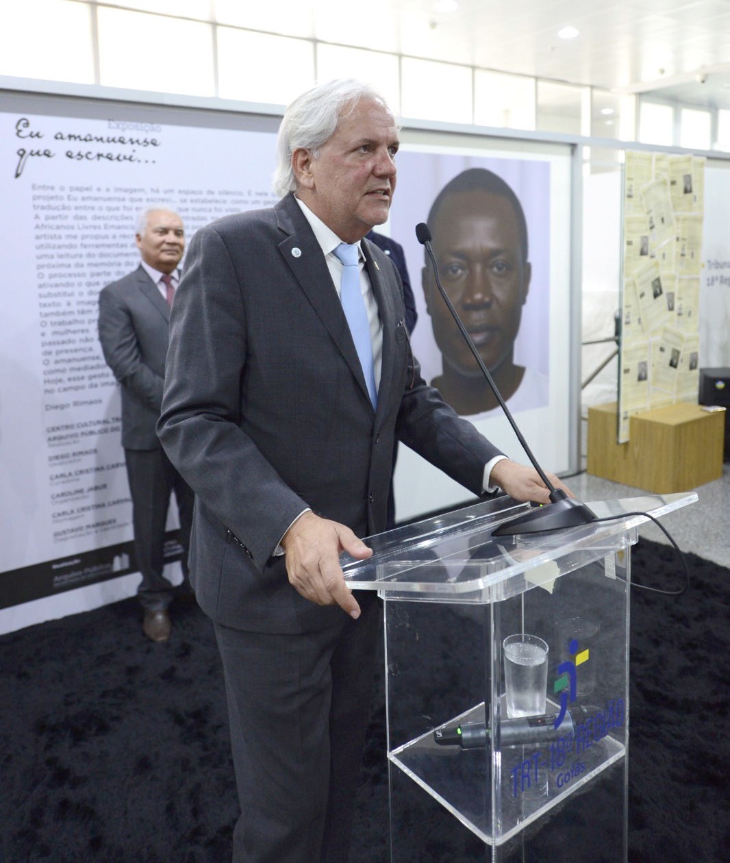 O desembargador Elvecio Moura abriu as falas ressaltando o valor simbólico da exposição “Eu amanuense que escrevi…” e o papel do TRT-GO na preservação da memória e da cultura. Ele afirmou que a exposição “transforma palavras em imagens”, dando rosto e presença para aqueles que “por séculos foram reduzidos a números ou descrições”.
