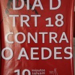 O TRT18 promoveu nesta terça-feira, 19/4, o Dia D contra o Aedes, como parte da campanha do Conselho Nacional de Justiça (CNJ) “O Judiciário contra o mosquito”. O Núcleo de Saúde montou um estande no térreo do Fórum Trabalhista de Goiânia, com demonstrações aos servidores, magistrados e ao público que frequenta o Tribunal, das formas de multiplicação do mosquito Aedes aegypti, transmissor da dengue, chikungunya e zika. A campanha foi realizada em parceria com a Divisão de Comunicação Social e Cerimonial.