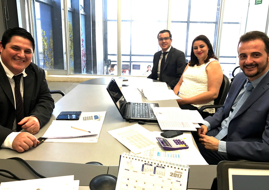 Na foto, os advogados do atleta Valmir Santos e da empresa que o representa, a JZ Gerenciamento e Assessoria DesportivaLTDA – EPP, chegaram a uma solução negociada do litígio em que o jogador fez cessão parcial do crédito trabalhista para pagar a empresa