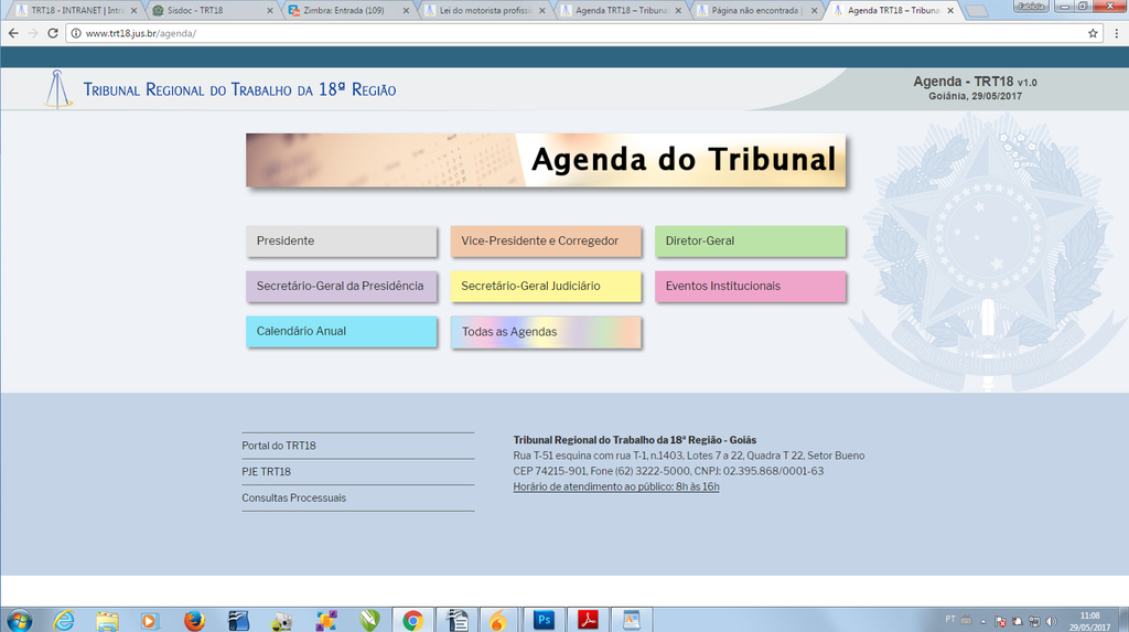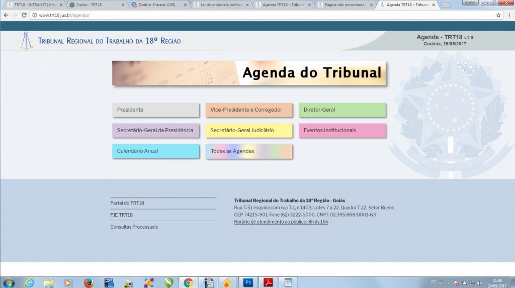 A nova agenda do TRT pode ser consultada no mesmo local das antigas agendas no portal do Tribunal na aba Informe-se. Ou no seguinte endereço: http://www.trt18.jus.br/agenda/.