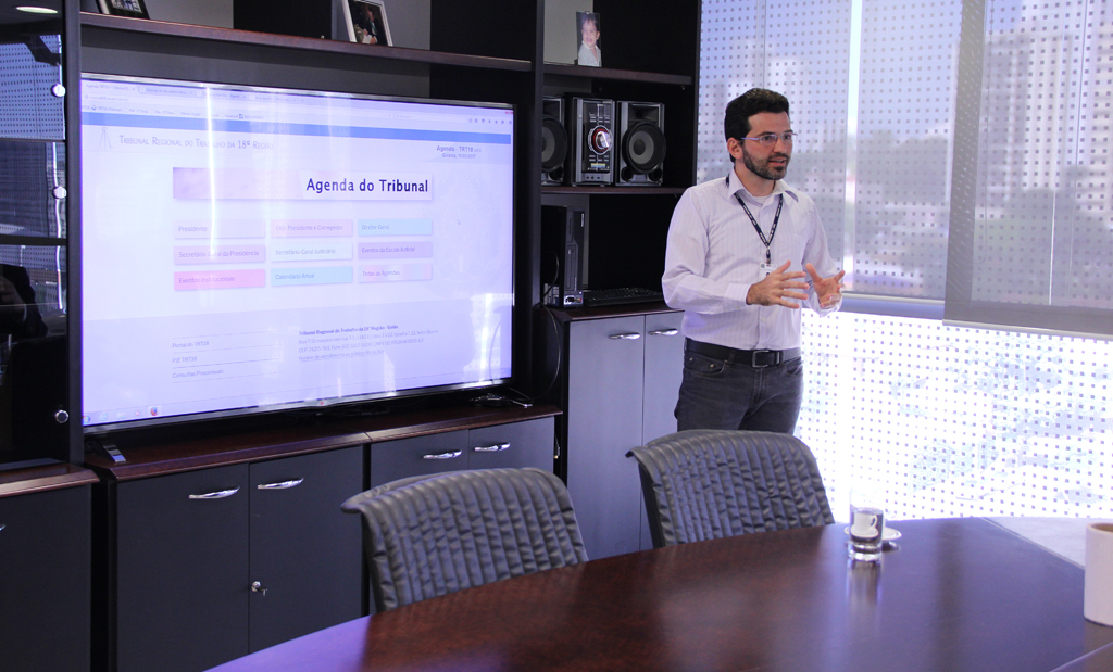 A nova Agenda institucional do TRT18 foi apresentada pela STI ao desembargador Breno Medeiros no último dia 11 de maio no Gabinete da Presidência