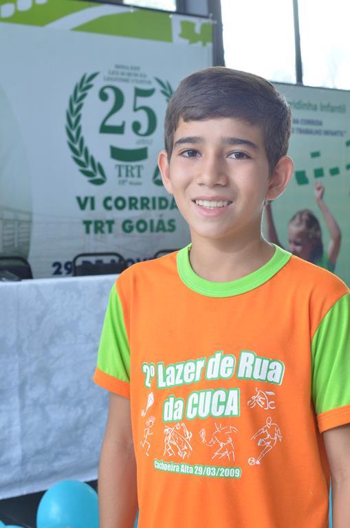 Outro atleta premiado e homenageado pelo TRT, o garoto Diullyann Dias e Silva, de 12 anos, disse estar muito contente com a homenagem do tribunal. O menino, da cidade goiana de Cachoeira Alta, revelou que começou a correr aos quatro anos, incentivado pelo pai, também esportista. Ele contou ainda que coleciona 132 medalhas, 4 troféus e duas bicicletas, dadas como premiação nos eventos de que já participou. O garoto confirmou que vai participar da Corridinha Infantil de 2015.