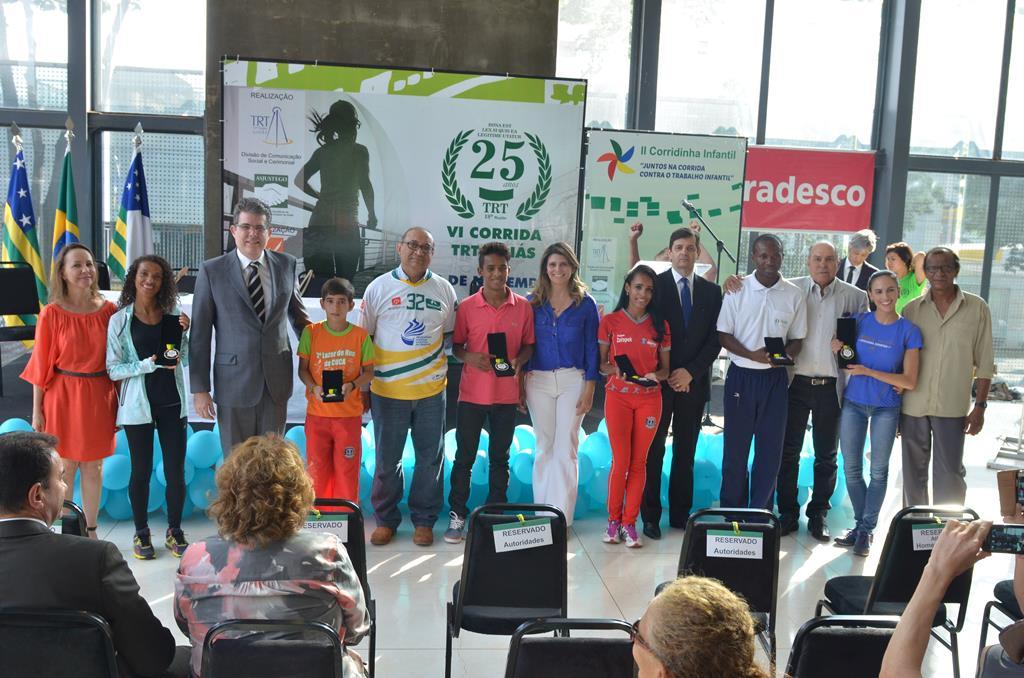 Durante o lançamento da VI Corrida TRT e da II Corridinha Infantil, o tribunal homenageou seis atletas que vêm colecionando prêmios no atletismo goiano. São eles: Andrielly Lorrany Avelar, Rosilene Silveira de Jesus, Daiane Aguiar Barros, Gustavo Barros de Sousa, José Adriano Bispo de Araujo e Diullyann Dias e Silva. Eles receberam medalhas que foram entregues pelos integrantes da mesa do evento. Entre eles estavam representantes do TRT-GO, do Ministério Público do Trabalho, do Governo de Goiás, da prefeitura de Goiânia e de entidades ligadas ao esporte e do Bradesco, patrocinador oficial da corrida.