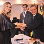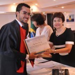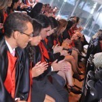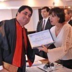 DSC_0208 (Copy)Os magistrados e servidores que fizeram o curso de especialização Tutela do Meio Ambiente do Trabalho e Saúde do Trabalhador receberam o certificado de conclusão do curso em cerimônia realizada no auditório do Fórum Trabalhista de Goiânia, na manhã desta sexta-feira, 8/4. O reitor da PUC Goiás, Wolmir Amado, e a professora Milca Severino, pró-Reitora de Pós-Graduação e Pesquisa, prestigiaram a cerimônia, que foi dirigida pela diretora da Escola Judicial, desembargadora Kathia Albuquerque. No total, 53 pessoas concluíram o curso, 15 magistrados e 39 servidores. A especialização foi resultado de parceria entre a Escola Judicial do Tribunal e a PUC Goiás.