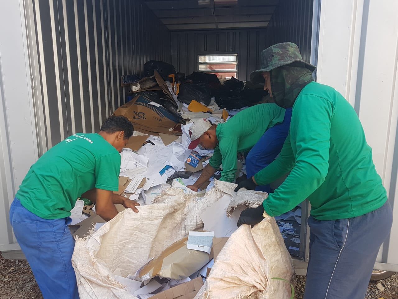 Eram dez horas da manhã desta quinta-feira, 14/02, quando o caminhão da Coopermas – uma das treze cooperativas de catadores de materiais recicláveis com as quais o TRT18 tem convênio – estacionou na rua T-29, onde está o contêiner em que ficam armazenados todos os resíduos recicláveis coletados no âmbito do Fórum Trabalhista de Goiânia, formados sobretudo por papel e papelão.
