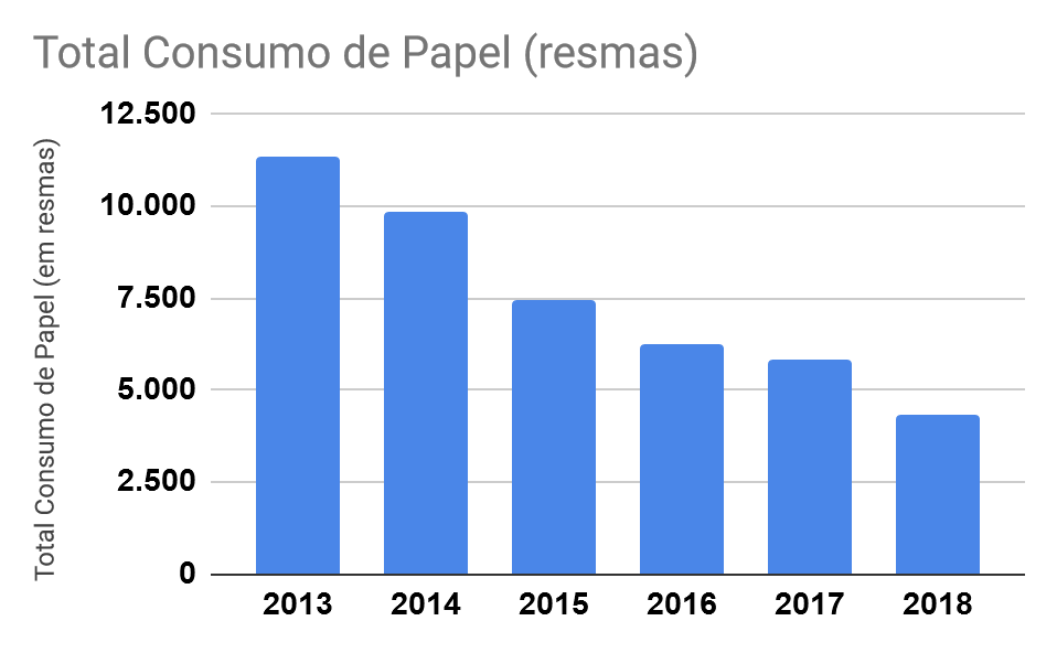 Consumo – Outra boa notícia foi a redução do consumo de papel no âmbito do Tribunal em 2018, quando foram usadas 4.308 resmas, 26% a menos que no ano anterior. A meta da Administração do Regional para 2019 é reduzir ainda mais, até atingir o ponto de equilíbrio, que é a “quantidade ideal de recursos materiais necessários para a execução das atividades desempenhadas por uma unidade de trabalho, sem prejuízo de sua eficiência”, conforme explica a Resolução 201/2015 do CNJ.