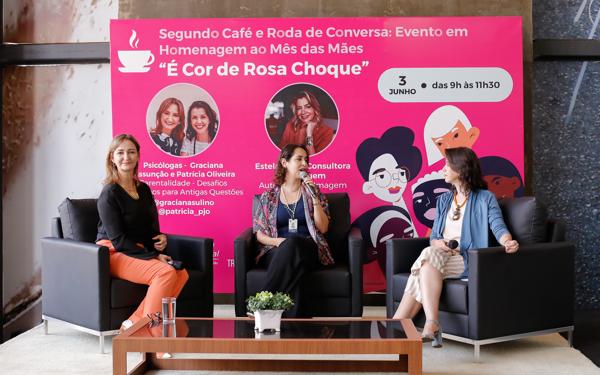 A Escola Judicial do TRT-18 (Ejud-18) promoveu na última sexta-feira, 3/6, o Segundo Café e Roda de Conversa com o slogan “É Cor de Rosa Choque”. O evento, aberto à comunidade do tribunal e também ao público externo, marcou a continuidade das homenagens ao Mês das Mães com um café da manhã especial oferecido aos participantes e com um bate-papo sobre o universo da parentalidade e a importância da imagem pessoal nas relações profissionais.