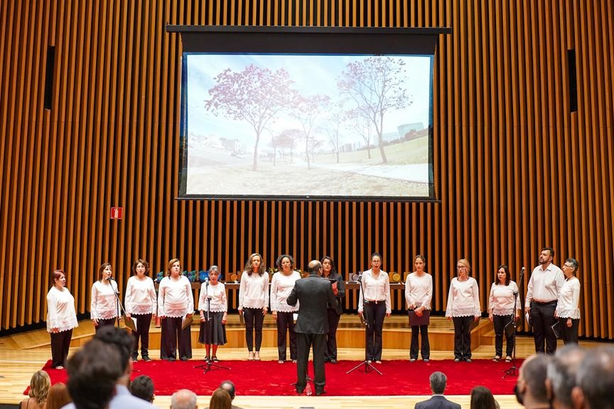 Última apresentação do Coral labor em Canto em 2021 durante a solenidade de premiação do Selo Metas CNJ