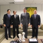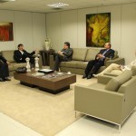O presidente do TRT de Goiás, desembargador Aldon Taglialegna, recebeu o vice-presidente do TRT da 24ª Região (MS), desembargador João de Deus Gomes Souza, e o seu assessor Arthur Mitsugi Koga, na manhã desta terça-feira, 15/9. O juiz Israel Adourian também os acompanhou durante a visita ao Fórum Trabalhista de Goiânia. O objetivo foi conhecer as instalações do Centro Judiciário de Solução de Conflitos e Cidadania.