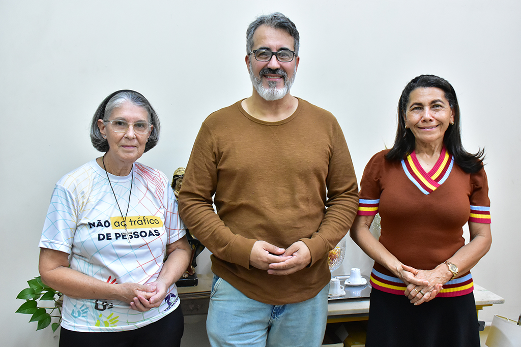 Roberto Portela e as irmãs Sandra Ede e Maria Odete Pereira participaram da execução da videoaula para os professores da rede pública de ensino