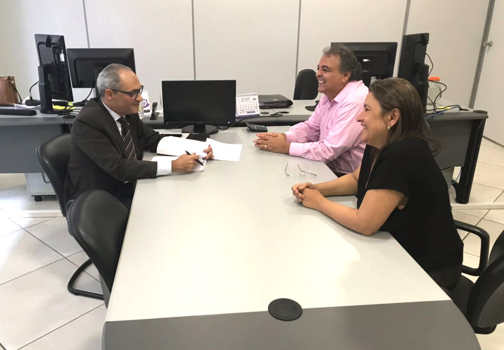 Paulo Pimenta, à esquerda, com a juíza Alciane Carvalho e com o diretor de Secretaria Marcello Pena